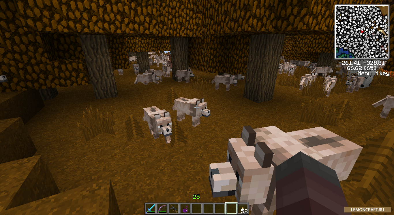 Мод Sophisticated Wolves изменяет волков как внешне так и внутренне. Теперь волки будут более умными и иметь 4 дополнительных цвета. Так же у волков появятся различные возможности, которых у них ранее не наблюдалось. Теперь в задачу волка входит предупреждение вас о появлении крипера, а так же ваша защита от него.