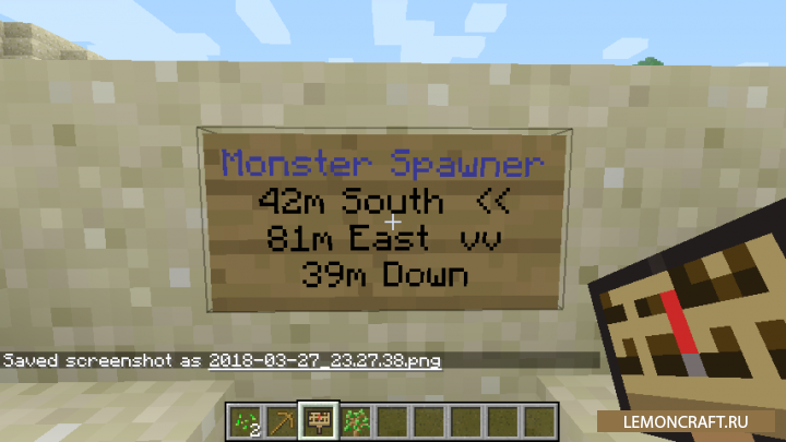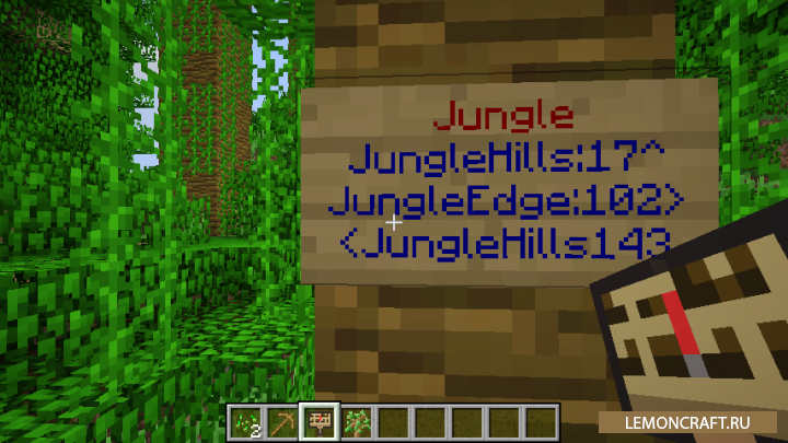 Мод The Minecraft Guidepost добавляет в игру очень полезные, информационные таблички. Данные таблички будут указывать расстояния до ближайших полезных вещей. Теперь вы без особого труда сможете определить расстояния до ближайшей руды, реки, пляжа, сундуков и других полезных вещей. Мод указывает не только расстояние, но и направление до ближайшей точки.