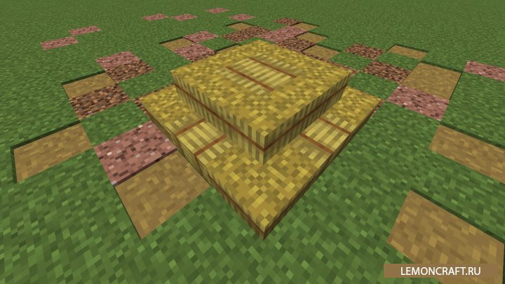Мод на стог сена I like Thatch добавляет в игру возможность создания стога сена из травы, который вы сможете использовать в качестве декоративного элемента или в качестве ступенек для лестницы. Срезав ножницами траву вы получите небольшой стог, который будет зеленого цвета, но со временем он пожелтеет и превратиться в настоящее сено.